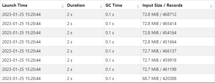 - 지정한 row 수가 달라지면 파일을 scan(input size)하는 데이터 양이 달라진다. (100,000개 15.9MiB, 4096개 712KiB)