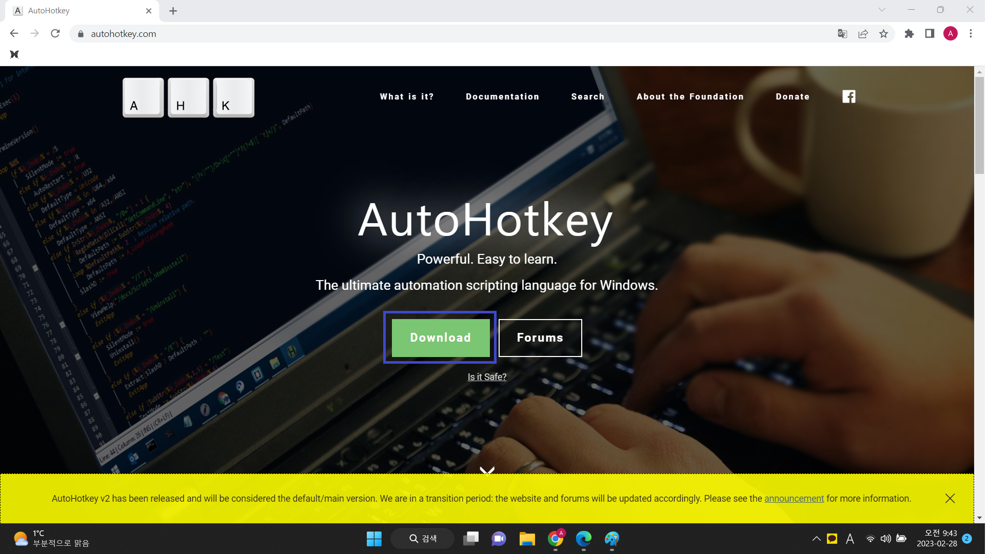 다운로드 링크: https://www.autohotkey.com/