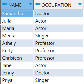 Occupation will only contain one of the following values: Doctor, Professor, Singer or Actor.