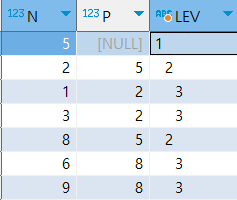 SELECT N,P,LPAD(' ', (LEVEL-1)*2) || LEVEL LEV
